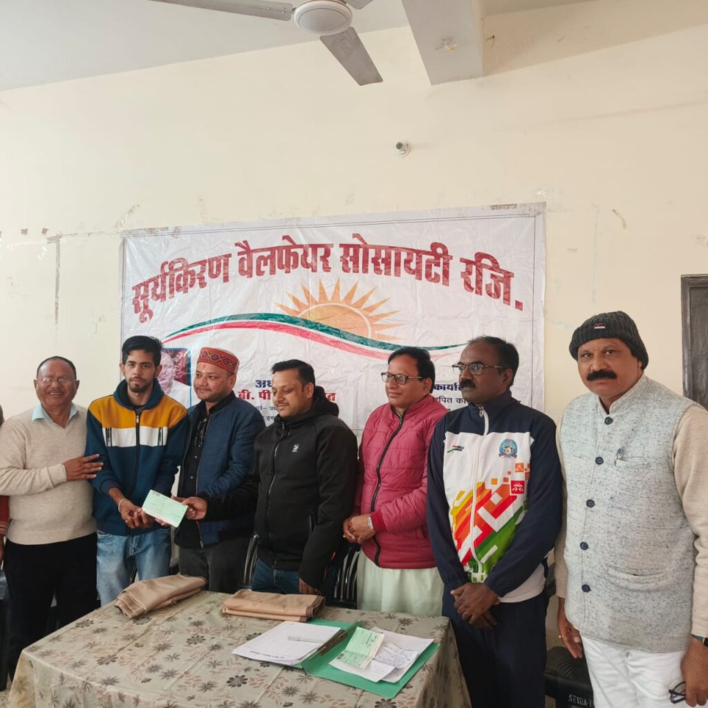 सूर्य किरण वेलफेयर सोसाइटी की ओर से खेल ,शिक्षा, और सामाजिक कार्यों में अपनी महत्वपूर्ण भूमिका निभा रही प्रतिभाओं को आज 32 ट्रैक सूट देकर सम्मानित किया।