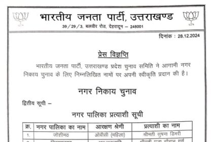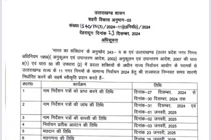 आज उत्तराखण्ड राज्य के 11 नगर निगमों के सामान्य निर्वाचन 2024 हेतु…