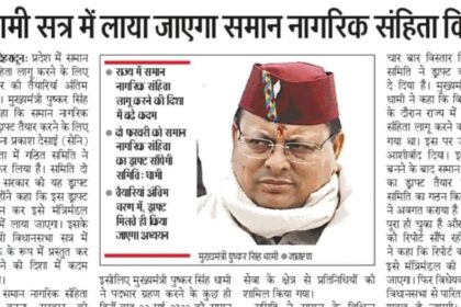 उत्तराखंड में यूसीसी समिति 2 फरवरी को रिपोर्ट सौंपेगी।