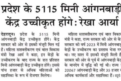 प्रदेश के 5115 मिनी आंगनवाड़ी केंद्र उच्च कृत होंगे। केंद्र सरकार की…