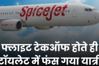 स्पाइसजेट के टॉयलेट में फंसा यात्री ।