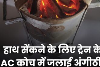 ठंड लगी तो ट्रेन के एसी कोच में ही जला दी अंगीठी।