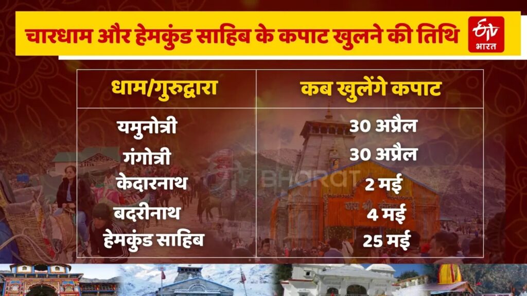 अभी तक दो करोड़ रुपए से ज्यादा की बुकिंग हो चुकी है। इसके साथ ही स्वास्थ्य विभाग और परिवहन विभाग भी तैयारियों में जुटा हुआ है।चारधाम यात्रा के कपाट खुलने की तिथि पहले ही तय हो चुकी है। जिसके तहत 30 अप्रैल को अक्षय तृतीया के दिन गंगोत्री और यमुनोत्री धाम के कपाट खोले जाएंगे। इसके बाद 2 मई को केदारनाथ और 4 मई को बदरीनाथ धाम के कपाट श्रद्धालुओं के लिए खोल दिए जाएंगे।