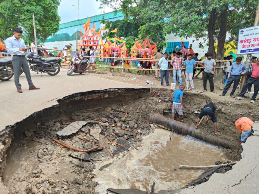 हरिद्वार जिला प्रशासन में शुक्रवार सुबह उस समय हड़कंप मच गया जब हर की पैड़ी से सीसीआर की ओर जाने वाली कांवड़ पटरी के अचानक धंसने की सूचना सामने आई। शुरुआती जांच में पाया गया कि पेयजल निगम की पुरानी लाइन (स्थापित वर्ष 1972) में भारी लीकेज के चलते सड़क का बड़ा हिस्सा कटकर बह गया, जिससे पटरी पर कई मीटर लंबा और गहरा गड्ढा बन गया।