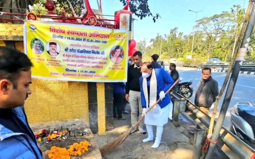 इसी क्रम में आज हरिद्वार लोकसभा क्षेत्र से सांसद डॉ रमेश पोखरियाल निशंक डोईवाला विधानसभा के लच्छी वाला क्षेत्र में स्थित सुप्रसिद्ध मणिमाई मां काली मंदिर में पहुंचे जहां उन्होंने साफ सफाई की। मंदिर पहुंचकर सबसे पहले उन्होंने पूजा अर्चना की तत्पश्चात सफाई अभियान चलाया।