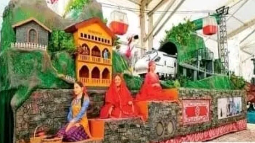 उन्होंने बताया कि विकसित उत्तराखंड झांकी के अग्रभाग में कुमाऊनी महिला को पारंपरिक वेशभूषा में स्वागत करते हुए दिखाया गया है। और पारंपरिक व्यंजन मांडवा, झंगोरा, रामदाना व कोनी की खेती और राज्य पक्षी मोनाल को दर्शाया गया है। झांकी के मध्य भाग में होमस्टे को दिखाया गया है जिसके माध्यम से उत्तराखंड के ग्रामीणों को रोजगार मिल रहा है।